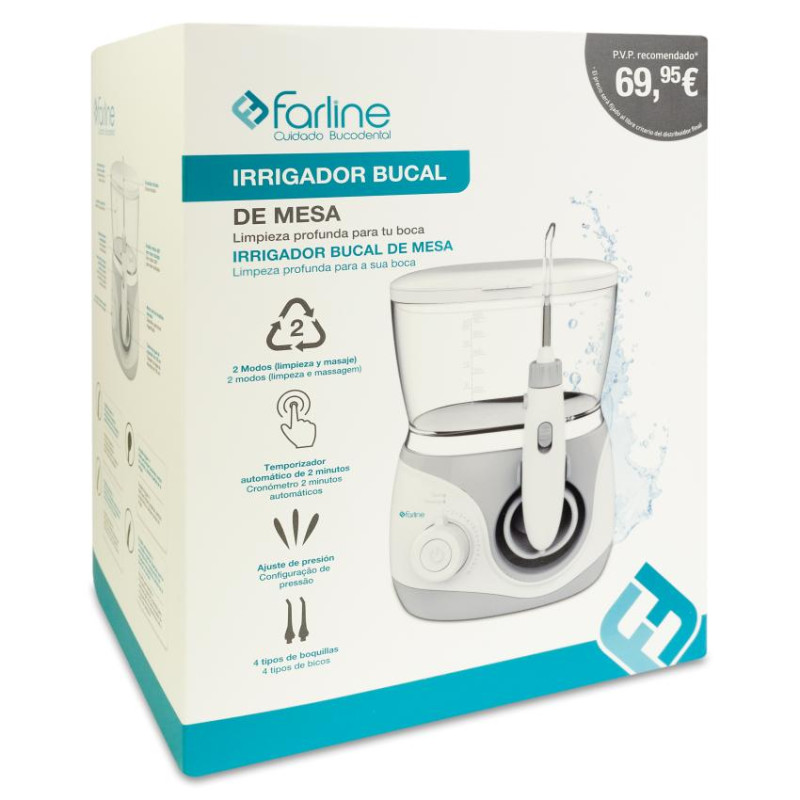 Irrigador bucal de mesa, para una limpieza profunda de la boca. Más compacto, más silencioso.